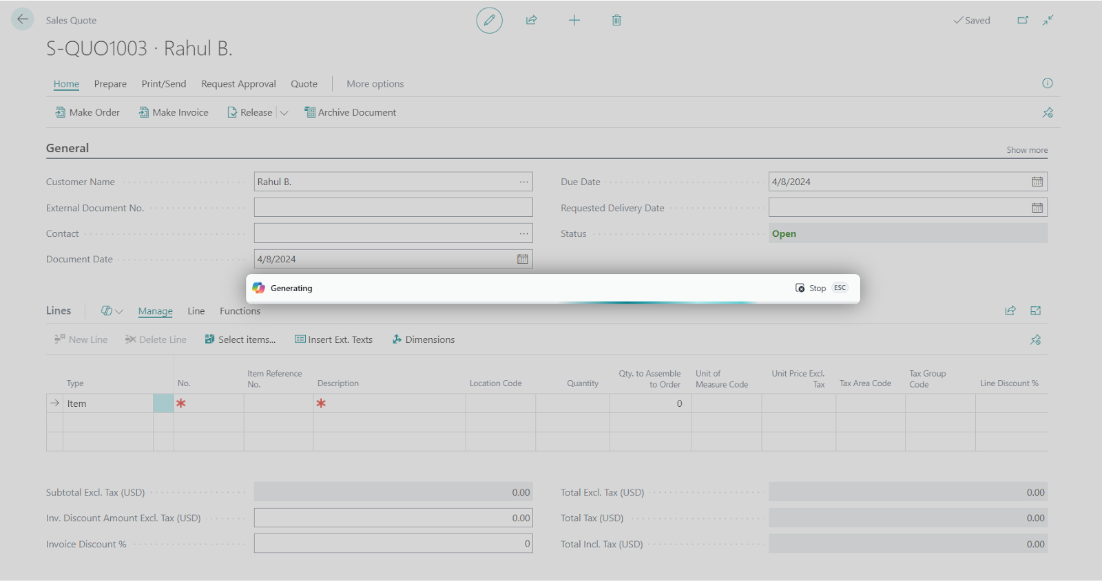 Microsoft is rapidly integrating Copilot across its ecosystem, empowering users with AI-driven assistance in various business processes. As enterprise systems become more connected, AI gains deeper access to data, enabling automation that eliminates tedious tasks and lets users focus on strategic decisions. In Dynamics 365, Copilot can help sales teams by generating Sales Quote Lines or Sales Order Lines by providing a rough prompt.